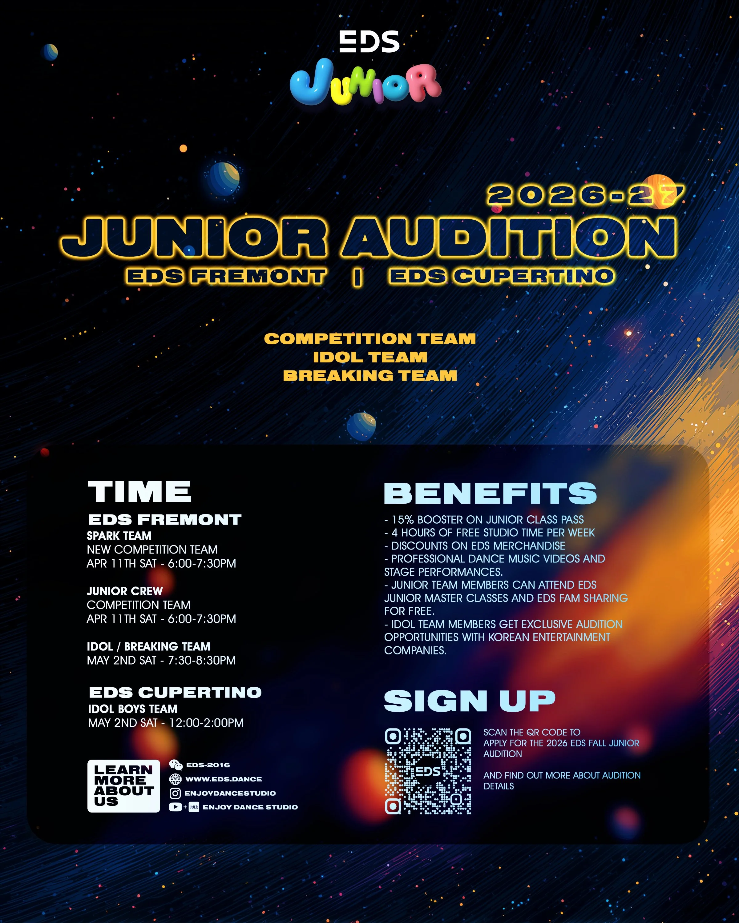 Junior Team members can attend EDS Junior Master Classes and EDS FAM sharing for free.